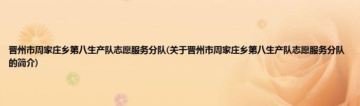 本文关于晋州市周家庄乡第八生产队志愿服务分队的简介就讲解完毕,希望对大家有所帮助。