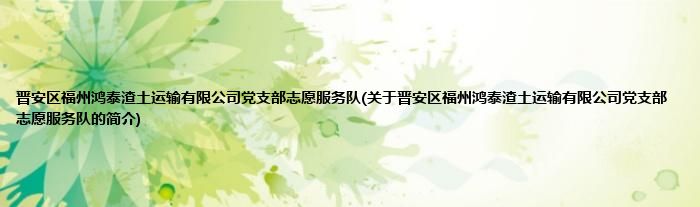 本文关于晋安区福州鸿泰渣土运输有限公司党支部志愿服务队的简介就讲解完毕,希望对大家有所帮助。