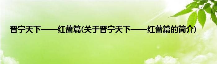 本文关于晋宁天下——红蔷篇的简介就讲解完毕,希望对大家有所帮助。