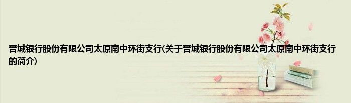 本文关于晋城银行股份有限公司太原南中环街支行的简介就讲解完毕,希望对大家有所帮助。