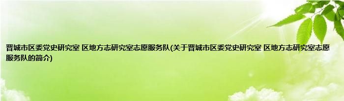 本文关于晋城市区委党史研究室 区地方志研究室志愿服务队的简介就讲解完毕,希望对大家有所帮助。