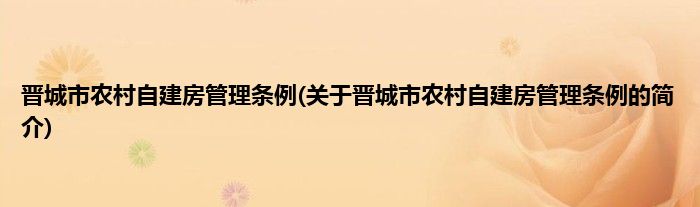 本文关于晋城市农村自建房管理条例的简介就讲解完毕,希望对大家有所帮助。