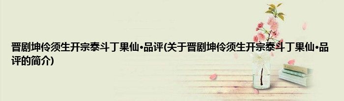 本文关于晋剧坤伶须生开宗泰斗丁果仙·品评的简介就讲解完毕,希望对大家有所帮助。