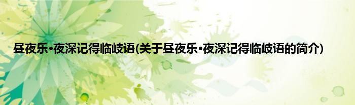 大家好,昼夜乐·夜深记得临岐语,关于昼夜乐·夜深记得临岐语的简介很多人还不知道,现在让我们一起来看看吧!