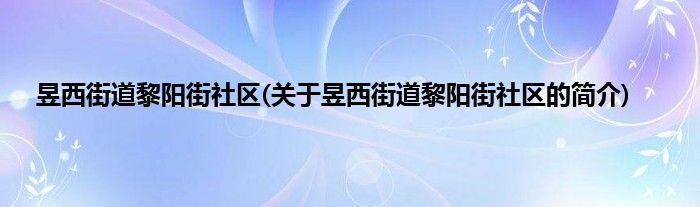 本文关于昱西街道黎阳街社区的简介就讲解完毕,希望对大家有所帮助。