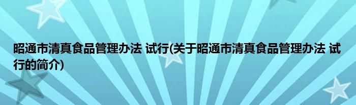 大家好,昭通市清真食品管理办法 试行,关于昭通市清真食品管理办法 试行的简介很多人还不知道,现在让我们一起来看看吧!