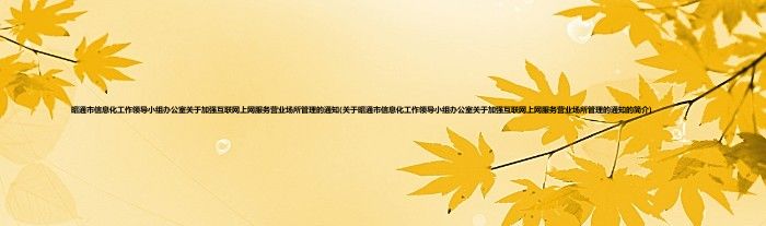本文关于昭通市信息化工作领导小组办公室关于加强互联网上网服务营业场所管理的通知的简介就讲解完毕,希望对大家有所帮助。