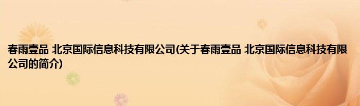 大家好,春雨壹品 北京国际信息科技有限公司,关于春雨壹品 北京国际信息科技有限公司的简介很多人还不知道,现在让我们一起来看看吧!