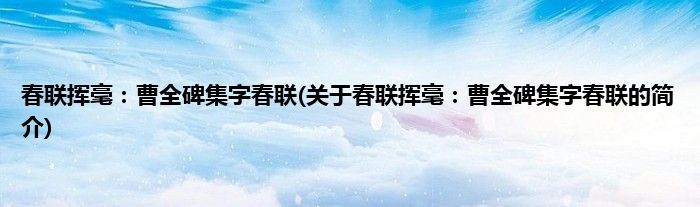 本文关于春联挥毫:曹全碑集字春联的简介就讲解完毕,希望对大家有所帮助。