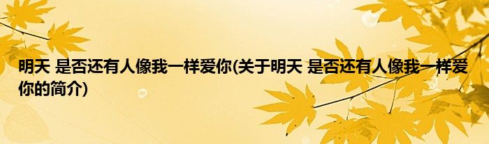 大家好,明天,是否还有人像我一样爱你,关于明天,是否还有人像我一样爱你的简介很多人还不知道,现在让我们一起来看看吧!