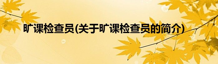 大家好,旷课检查员,关于旷课检查员的简介很多人还不知道,现在让我们一起来看看吧!