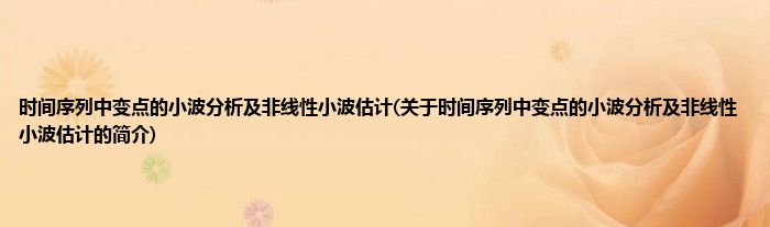 本文关于时间序列中变点的小波分析及非线性小波估计的简介就讲解完毕,希望对大家有所帮助。