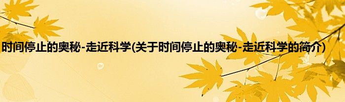 本文关于时间停止的奥秘-走近科学的简介就讲解完毕,希望对大家有所帮助。