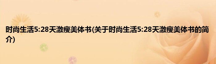本文关于时尚生活5:28天激瘦美体书的简介就讲解完毕,希望对大家有所帮助。