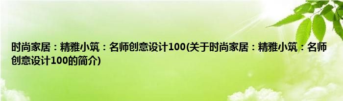 时尚家居:精雅小筑:名师创意设计100(关于时尚家居:精雅小筑:名师创意设计100的简介)