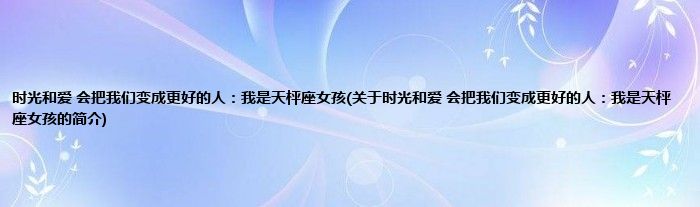 本文关于时光和爱,会把我们变成更好的人:我是天枰座女孩的简介就讲解完毕,希望对大家有所帮助。