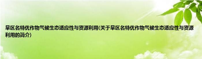 本文关于旱区名特优作物气候生态适应性与资源利用的简介就讲解完毕,希望对大家有所帮助。