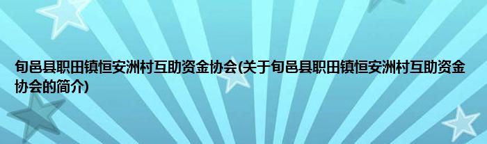 本文关于旬邑县职田镇恒安洲村互助资金协会的简介就讲解完毕,希望对大家有所帮助。