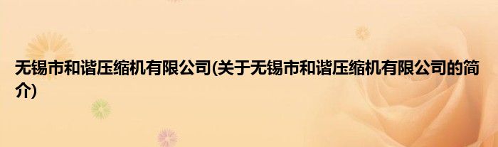 本文关于无锡市和谐压缩机有限公司的简介就讲解完毕,希望对大家有所帮助。