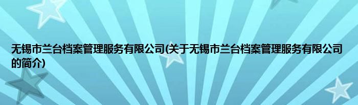 本文关于无锡市兰台档案管理服务有限公司的简介就讲解完毕,希望对大家有所帮助。