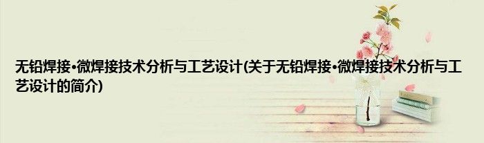 无铅焊接·微焊接技术分析与工艺设计(关于无铅焊接·微焊接技术分析与工艺设计的简介)