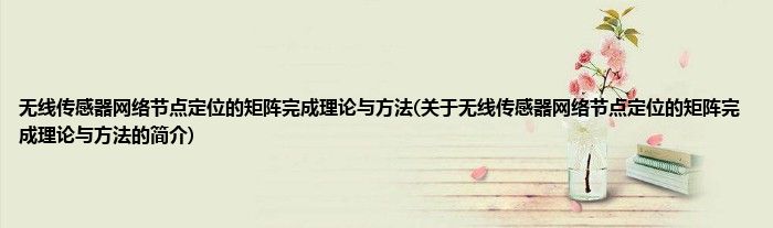 本文关于无线传感器网络节点定位的矩阵完成理论与方法的简介就讲解完毕,希望对大家有所帮助。