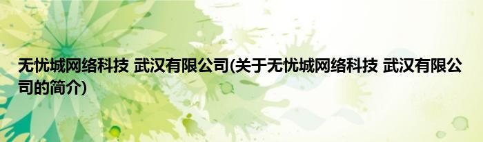 无忧城网络科技 武汉有限公司(关于无忧城网络科技 武汉有限公司的简介)