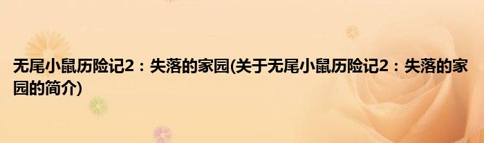 本文关于无尾小鼠历险记2:失落的家园的简介就讲解完毕,希望对大家有所帮助。