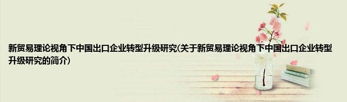 本文关于新贸易理论视角下中国出口企业转型升级研究的简介就讲解完毕,希望对大家有所帮助。