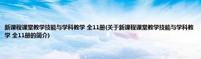 本文关于新课程课堂教学技能与学科教学 全11册的简介就讲解完毕,希望对大家有所帮助。
