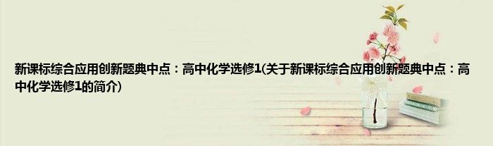 本文关于新课标综合应用创新题典中点:高中化学选修1的简介就讲解完毕,希望对大家有所帮助。