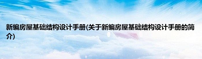 本文关于新编房屋基础结构设计手册的简介就讲解完毕,希望对大家有所帮助。