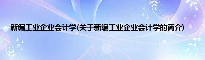 本文关于新编工业企业会计学的简介就讲解完毕,希望对大家有所帮助。