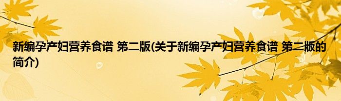 本文关于新编孕产妇营养食谱 第二版的简介就讲解完毕,希望对大家有所帮助。