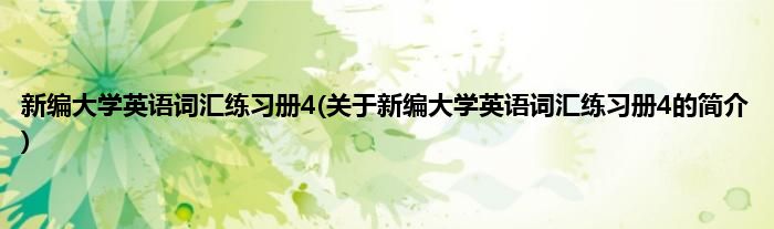 本文关于新编大学英语词汇练习册4的简介就讲解完毕,希望对大家有所帮助。