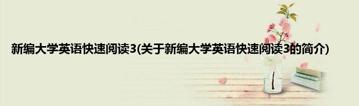本文关于新编大学英语快速阅读3的简介就讲解完毕,希望对大家有所帮助。