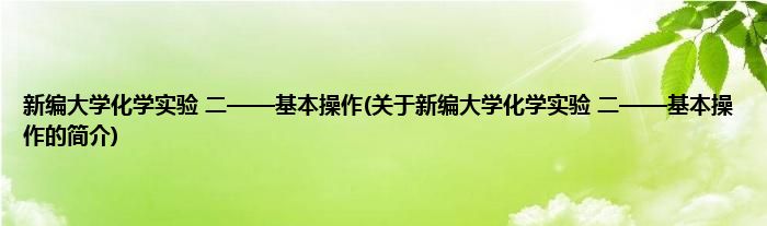 本文关于新编大学化学实验 二——基本操作的简介就讲解完毕,希望对大家有所帮助。