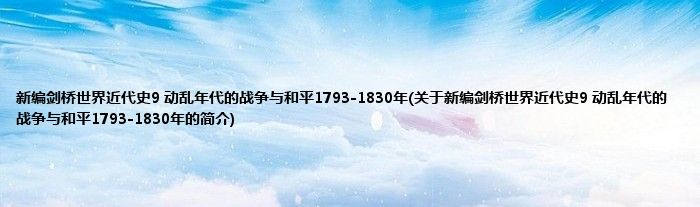 本文关于新编剑桥世界近代史9 动乱年代的战争与和平1793-1830年的简介就讲解完毕,希望对大家有所帮助。