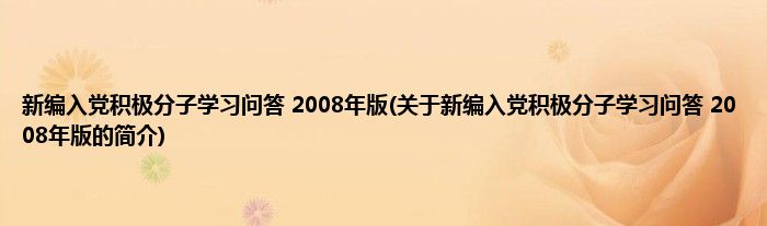 本文关于新编入党积极分子学习问答 2008年版的简介就讲解完毕,希望对大家有所帮助。