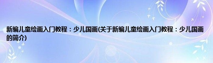 本文关于新编儿童绘画入门教程:少儿国画的简介就讲解完毕,希望对大家有所帮助。