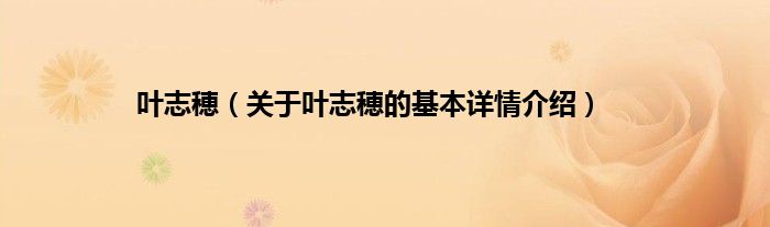 本文关于叶志穂的基本详情介绍就讲解完毕,希望对大家有所帮助。