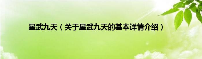 本文关于星武九天的基本详情介绍就讲解完毕,希望对大家有所帮助。