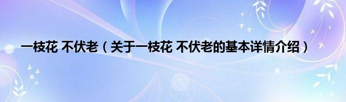 本文关于一枝花 不伏老的基本详情介绍就讲解完毕,希望对大家有所帮助。