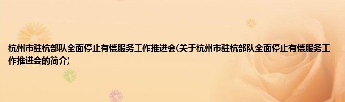 大家好,杭州市驻杭部队全面停止有偿服务工作推进会,关于杭州市驻杭部队全面停止有偿服务工作推进会的简介很多人还不知道,现在让我们一起来看看吧!