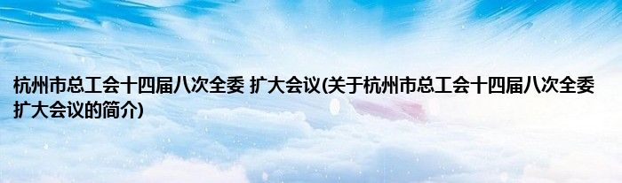 1、 杭州市总工会十四届八次全委(扩大)会议是2017年1月13日在杭州市召开的会议。