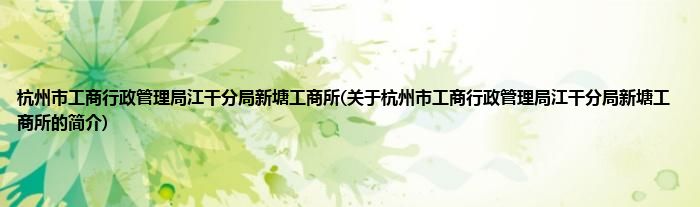 1、 杭州市工商行政管理局江干分局新塘工商所是浙江省杭州市的一个组织机构。