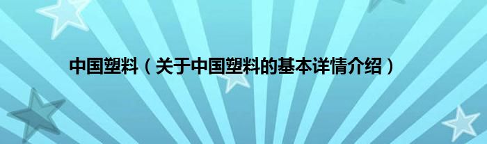 本文关于中国塑料的基本详情介绍就讲解完毕,希望对大家有所帮助。