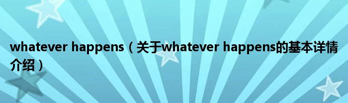 本文关于whatever happens的基本详情介绍就讲解完毕,希望对大家有所帮助。