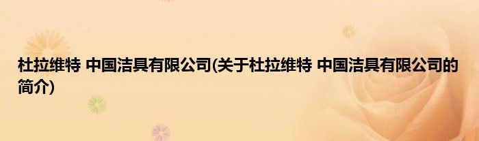 本文关于杜拉维特 中国洁具有限公司的简介就讲解完毕,希望对大家有所帮助。