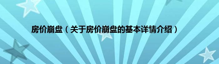房价崩盘(关于房价崩盘的基本详情介绍)